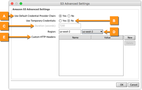 B | Use Temporary Credentials | No | If enabled, the given credentials will be used to request a set of temporary credentials from the Amazon Security Token Service (STS). Those temporary credentials will then be used for all S3 operations. |