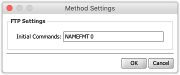 Initial Commands | A comma-separated list of custom commands to run upon initializing an FTP connection. For example when connecting to an AS/400 FTP server you may have to change the list format using the "NAMEFMT" command. |