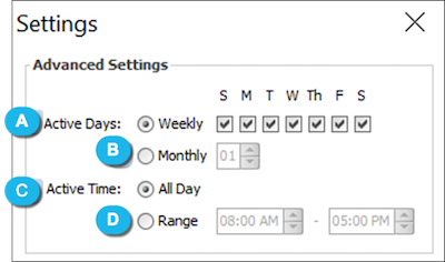 A | Active Days: Weekly | Select this option to only poll on the days of the week that are checked to the right. |
