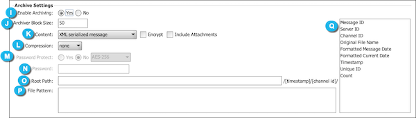 I | Enable Archiving | Determines whether message / attachment data is saved to disk before being pruned.