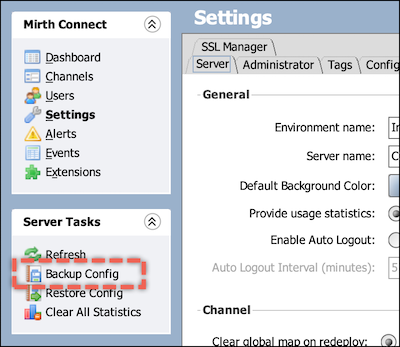 Note: If you have just installed Mirth® Connect and you do not yet have any channels or other configurations, you can skip this section.