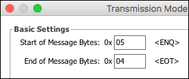 The s section to the right of the transmission mode dialog allows you to easily drag-and-drop bytes into the components to the left, without having to remember the actual hexadecimal values. These also show up as labels next to the byte fields: