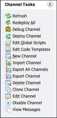 Disable Channel | Marks this channel as not ready to be deployed. The channel may not be deployed until it is re-enabled. However, if the channel was already deployed, then disabling it will not automatically undeploy it. | |