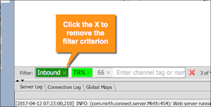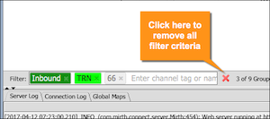 To clear specific tags / channel name searches from the filter criteria, select the X button next to the box inside the field.