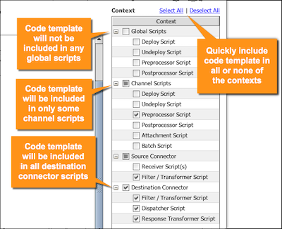 - Global Scripts: The global deploy/undeploy/preprocessor/postprocessor scripts, not specific to any particular channel. For additional information, see Edit Global Scripts View.