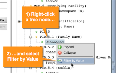 When editing a filter, you can create a Rule Builder Filter Rule directly from the message tree. When editing a transformer, you can create a Mapper Transformer Step in the same way.
