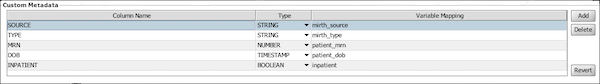 Custom metadata columns are user-created, searchable columns that appear in the Metadata Table in the Message Browser. As messages process through a channel, these columns are populated from the Variable Maps using a configurable map key.