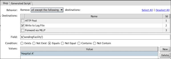 Behavior | Identifies which destinations will be removed (not processed) from the destination set. Available options are: