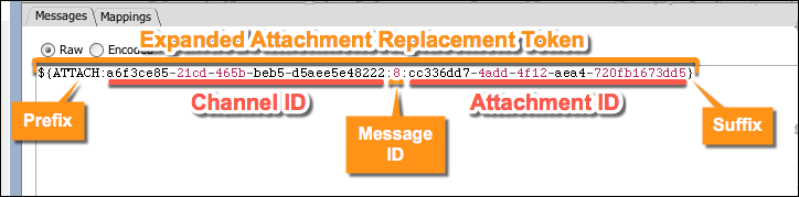 The expanded token contains the channel ID, message ID, and attachment ID, so that you can uniquely identify an attachment even from a completely different channel or message. Because of this, you can use this replacement token in downstream channels and reattach attachments from earlier, upstream channels.