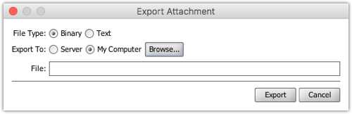 - Choose My Computer to pull the attachment down to the client side and write it out to a location on the machine running the Administrator.