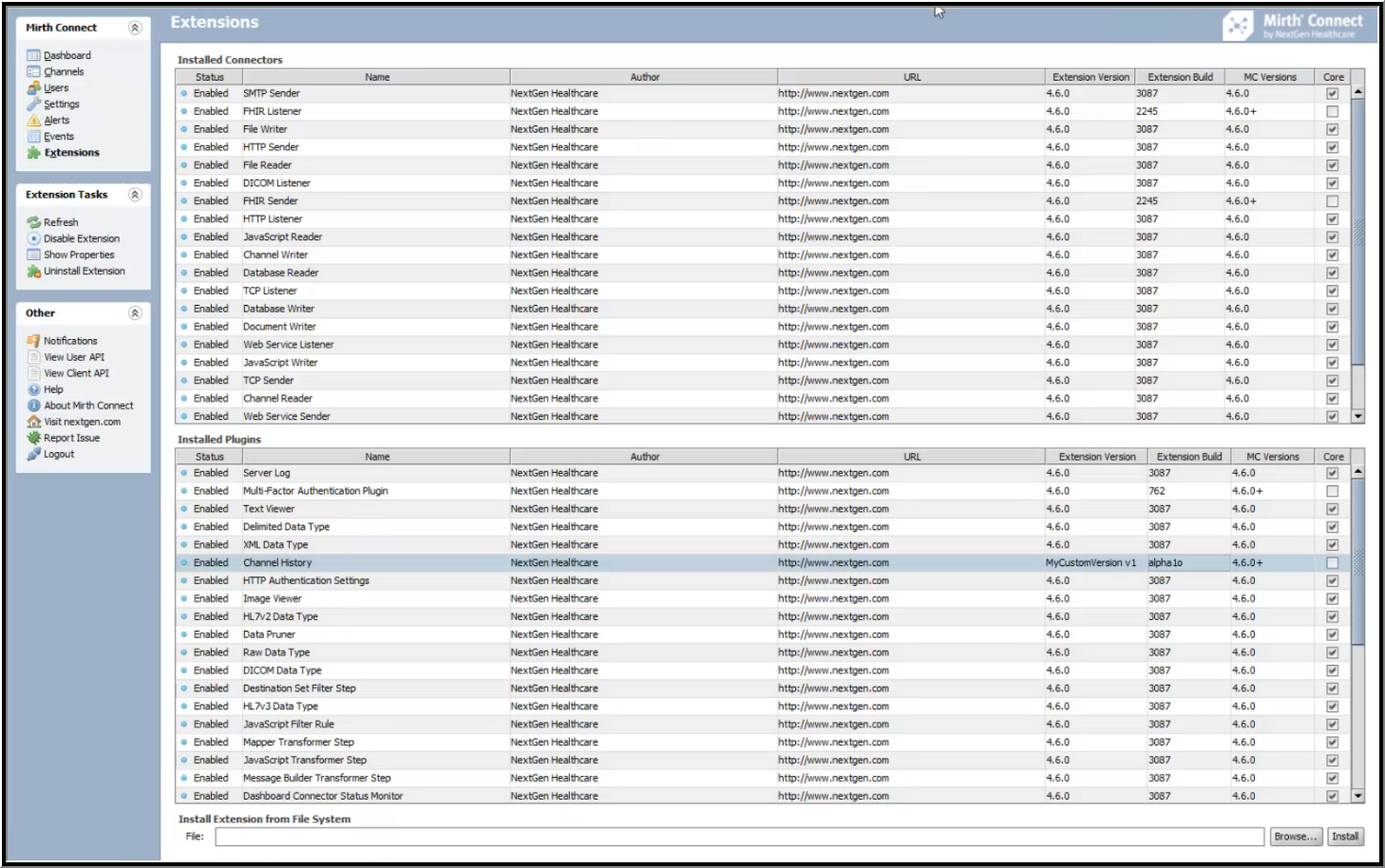 Extensions view enables you to manage all plug-ins and connectors installed on your