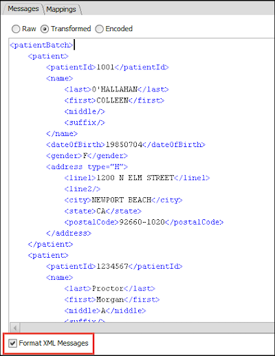The Format Messages check box allows you to pretty-print XML and JSON messages with whitespace and indentation so that it is easier to read. Note that this does not alter the actual message content, only how it is displayed in the Administrator.