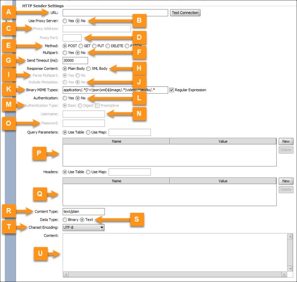 T | Charset Encoding | UTF-8 | Select the character set encoding to send with the Content-Type header, or Default to use the default character set encoding for the JVM Mirth® Connect is running on.