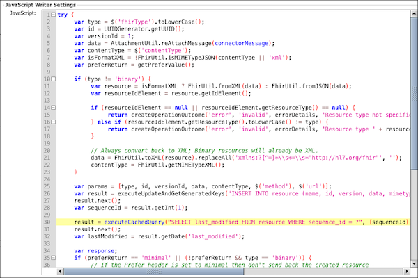 This destination connector executes a custom user-defined JavaScript script. This can be used in a wide variety of ways, such as calling out to external Java libraries or invoking a local OS shell script. You can return custom values that determine what response data to store, and what status to put the destination connector message into. Or simply use the script as a generic job that doesn't necessarily produce responses. For example, you can use tools like to programmatically start/stop/deploy channels from within the script.