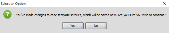 To include a library of code templates on the current channel, check the check box next to the library name, then select the OK button. A confirmation dialog is shown: