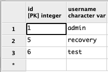 The above example uses a salted hash for the password "admin", assuming that the digest algorithm is still set to SHA-256. After issuing the above UPDATE statement, you should be able to login with a password of "admin". After logging in change the password as you see fit.