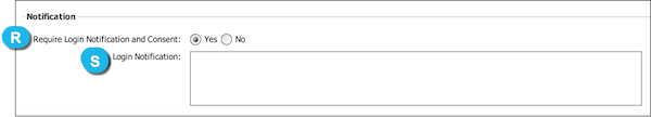 R | Require Login Notification and Consent | Determines whether a notification and consent message appears upon login. The default is Yes. |