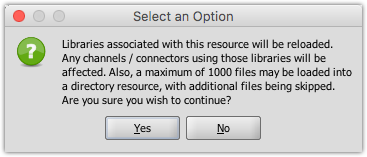 The actual implementation of this task depends on the type of resource. For directory resources the directory will be re-scanned for files, and all channels / connectors using the resource will have their respective classloaders destroyed and recreated with the new list of libraries.