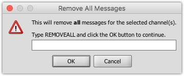 This is an additional layer of security to ensure that you do not remove message data accidentally. To proceed, you must type in "REMOVEALL" in all capital letters and select OK. If this additional layer of security is annoying, you can disable it in the Administrator Settings Tab.
