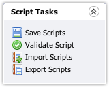 Validate Script | Validates the currently viewed script, ensuring that there are no syntax errors. | |