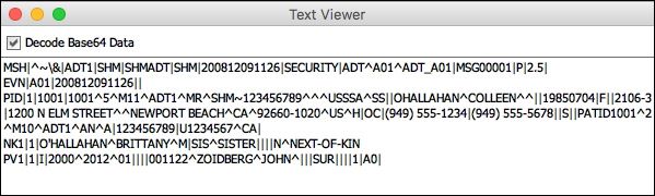 The data is assumed to be base Base64 encoded, so by default the Decode Base64 Data check box is checked. To view the raw data, clear that check box.