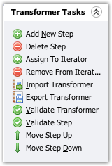 Export Transformer | Exports the current transformer (inbound/outbound data types and all steps) to an XML file. | |
