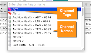 To view all tags / channel names in a list, select the Filter field so it has focus, and then select the Down arrow key.