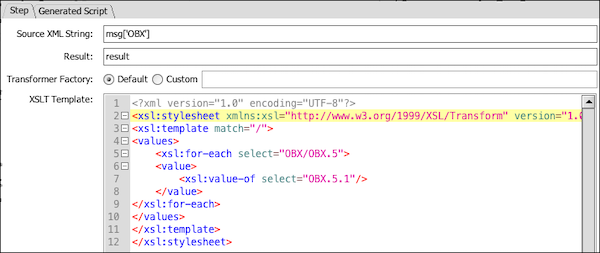 Transformer Factory | Select default to use the Java platform default TransformerFactory implementation class. Select custom to provide a custom TransformerFactory implementation class. |