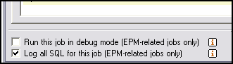 Note: To de-activate the Log All SQL for this job option, remove the check mark from the check box.