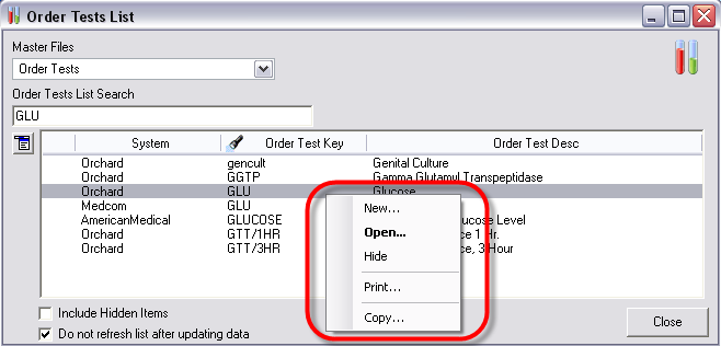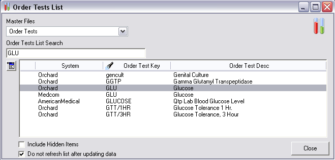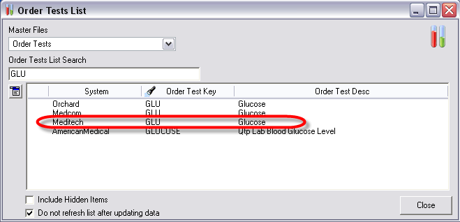 - Select to focus the search on Order Test Key and enter the name of an existing test.