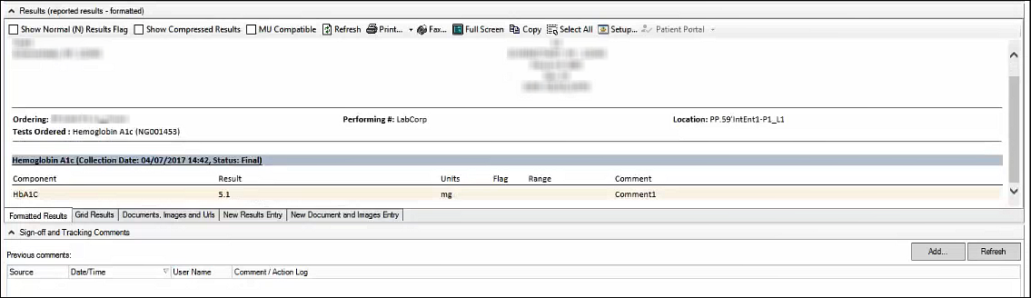 - On the Orders Summary tab, select a completed laboratory order that has been sent to a performing entity.