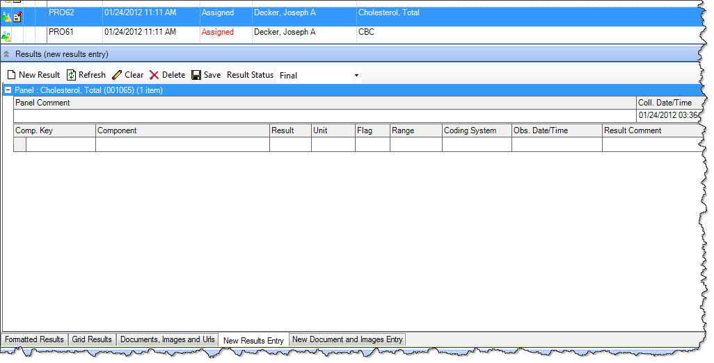 New Result  | When selected, creates a new result to associate with the selected order.  |