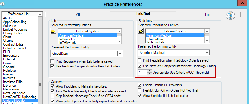 - To change the AUC Rule Threshold value for your practice, select another Appropriate Use Criteria (AUC) Threshold from the list.