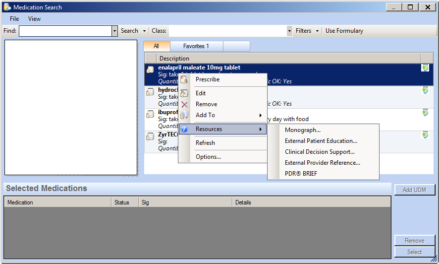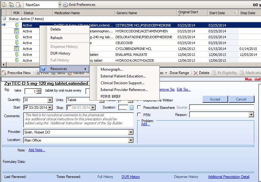 A majority of medications in the NextGen® Enterprise EHR database have corresponding educational information associated with them in the form of a drug monograph. When you prescribe a medication, you can view and print the monograph to provide the educational information to the patient.