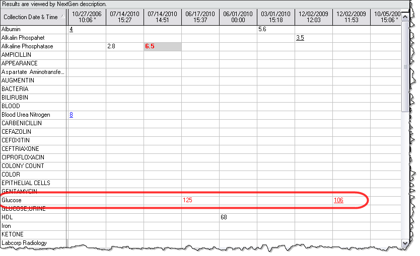 Note: You can set user preferences to use NextGen Description as the default labs result view and to View Results Only. For more information on setting up these preferences, go to NextGen Healthcare Success Community, and download the latest Layout and Preferences Guide for NextGen Enterprise EHR.